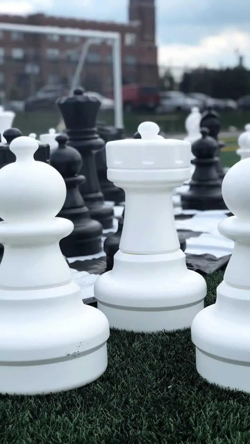 Chess is more fun in giant proportions. Being one of the oldest skilled games, our Giant Chess game will encourage strategy and build excitement. With a huge game board and oversized chess pieces this game is a sure attention getter. This rental is played on a large 10' x 10' playing mat.