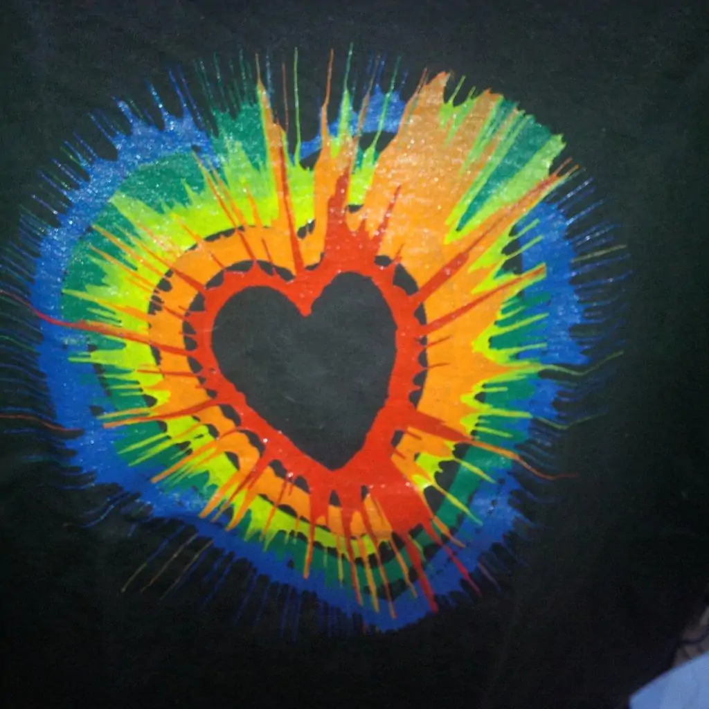 Pick your favourite colours and add them to your shirt. The disk spins the paint outward to create the coolest display of spin art you can wear!