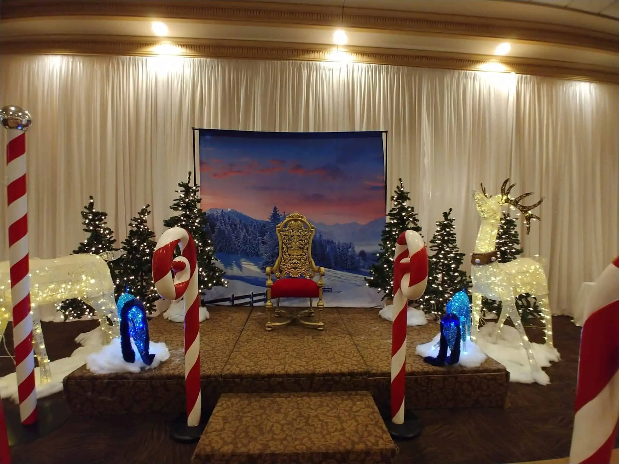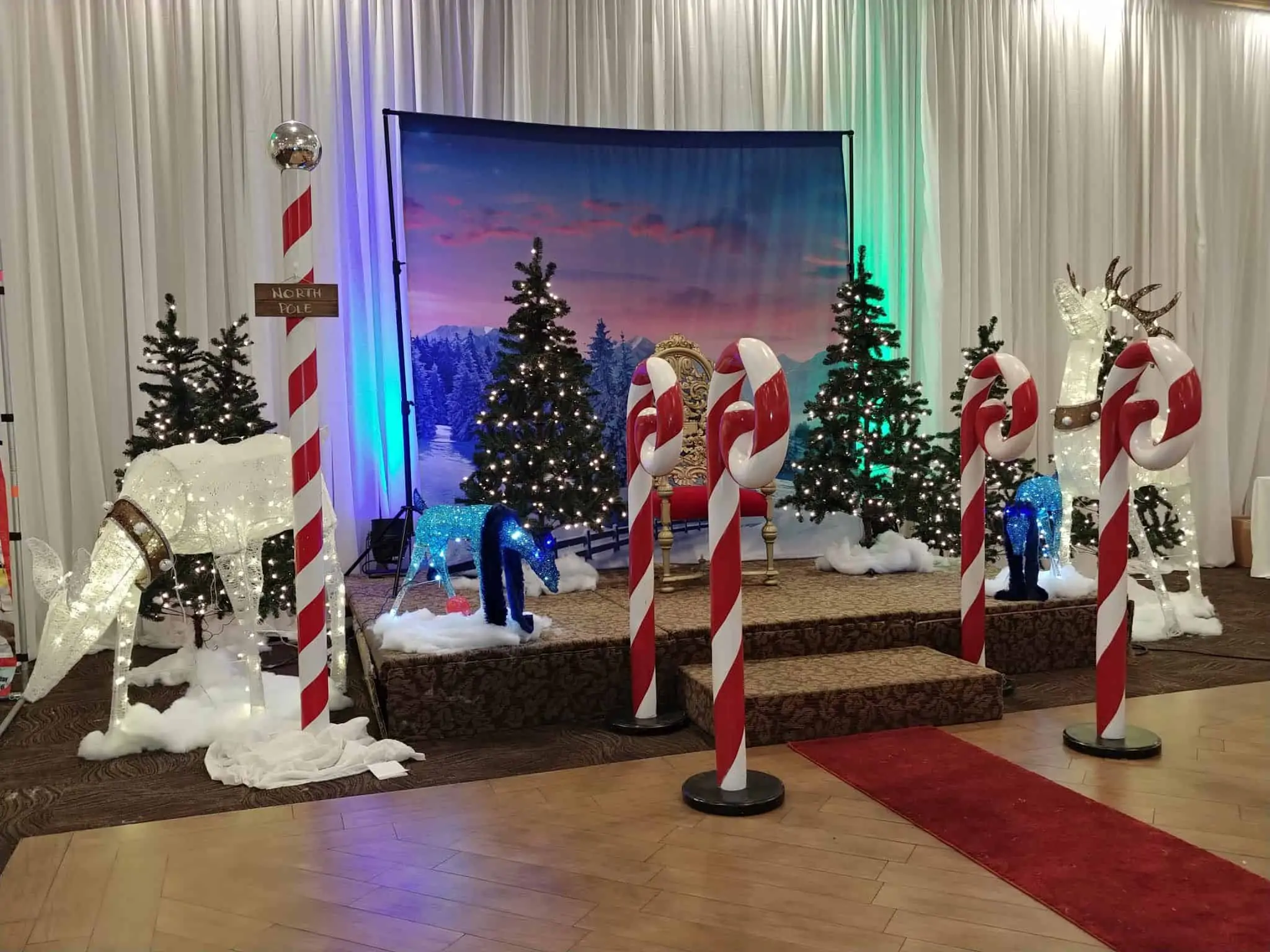 Welcome to the world of Santa! We have everything you need to create the perfect setup in Santa's workshop this Christmas. We can provide a stage where Santa and Mrs. Claus can sit and greet kids along with his elves. This is the perfect setup for beautiful holiday photos and photo–ops! Various set up options available.