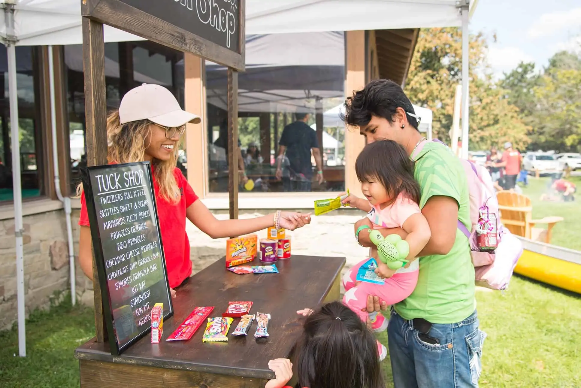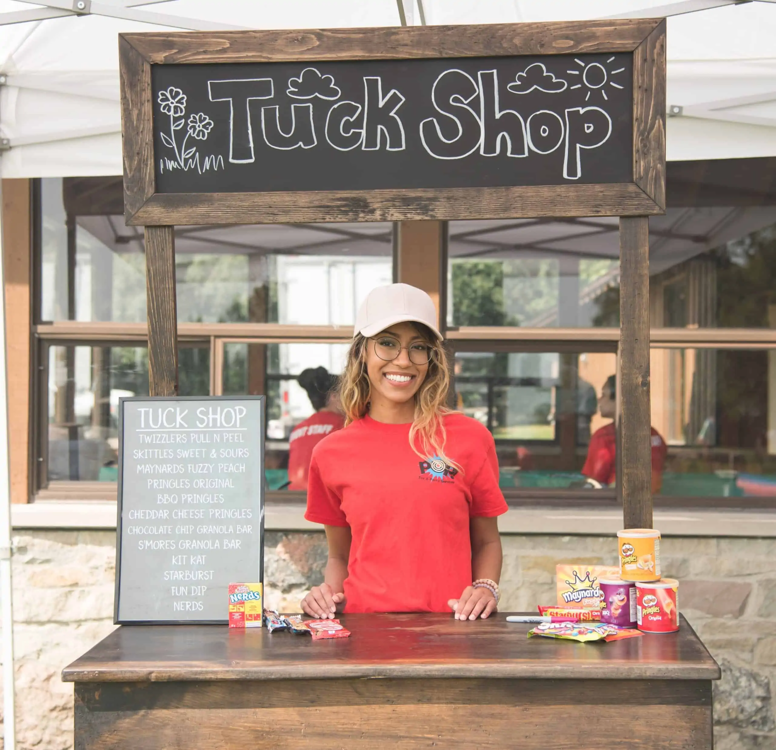 A throwback from those magical days at Summer camp!! Grab a bite to go at everyone's favorite tuck shop! Choices range from the ever–popular chocolate bars to healthy granola bars.